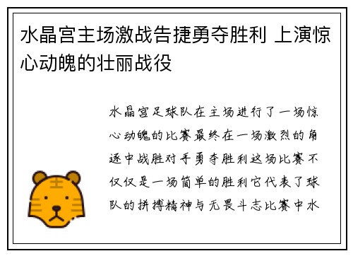 水晶宫主场激战告捷勇夺胜利 上演惊心动魄的壮丽战役